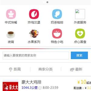 2)附近外卖商家展示:系统根据商家配送范围,自动搜索用户定位附近的外卖商家