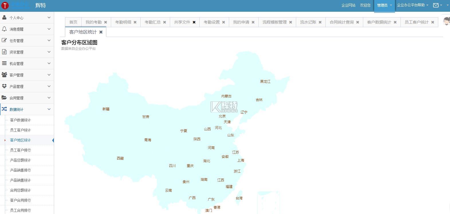 客户区域分布统计:以地图的形式统计客户区域分布情况